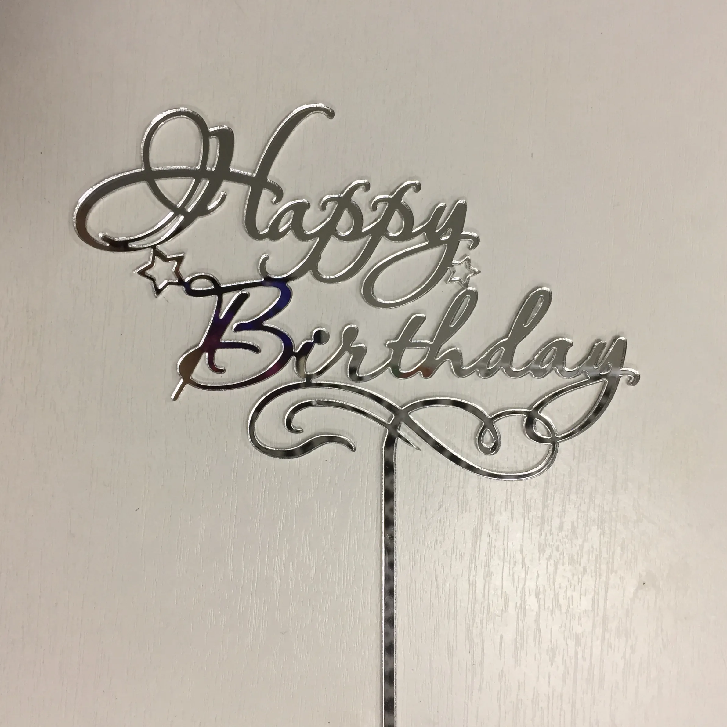 Топпер "Happy Birthday"(Хэппи), Серебро, акрил (звезды)
