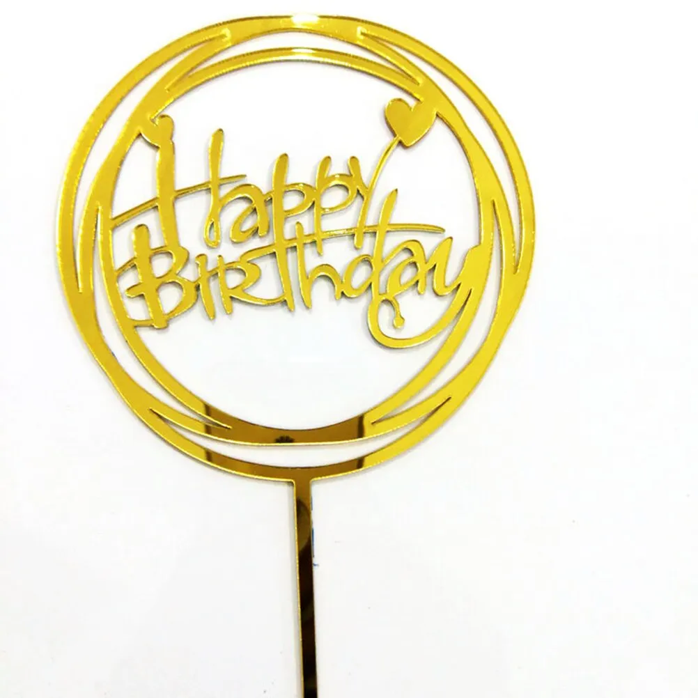 Топпер "Happy Birthday"(Хэппи) В КРУГЕ, Золото, акрил