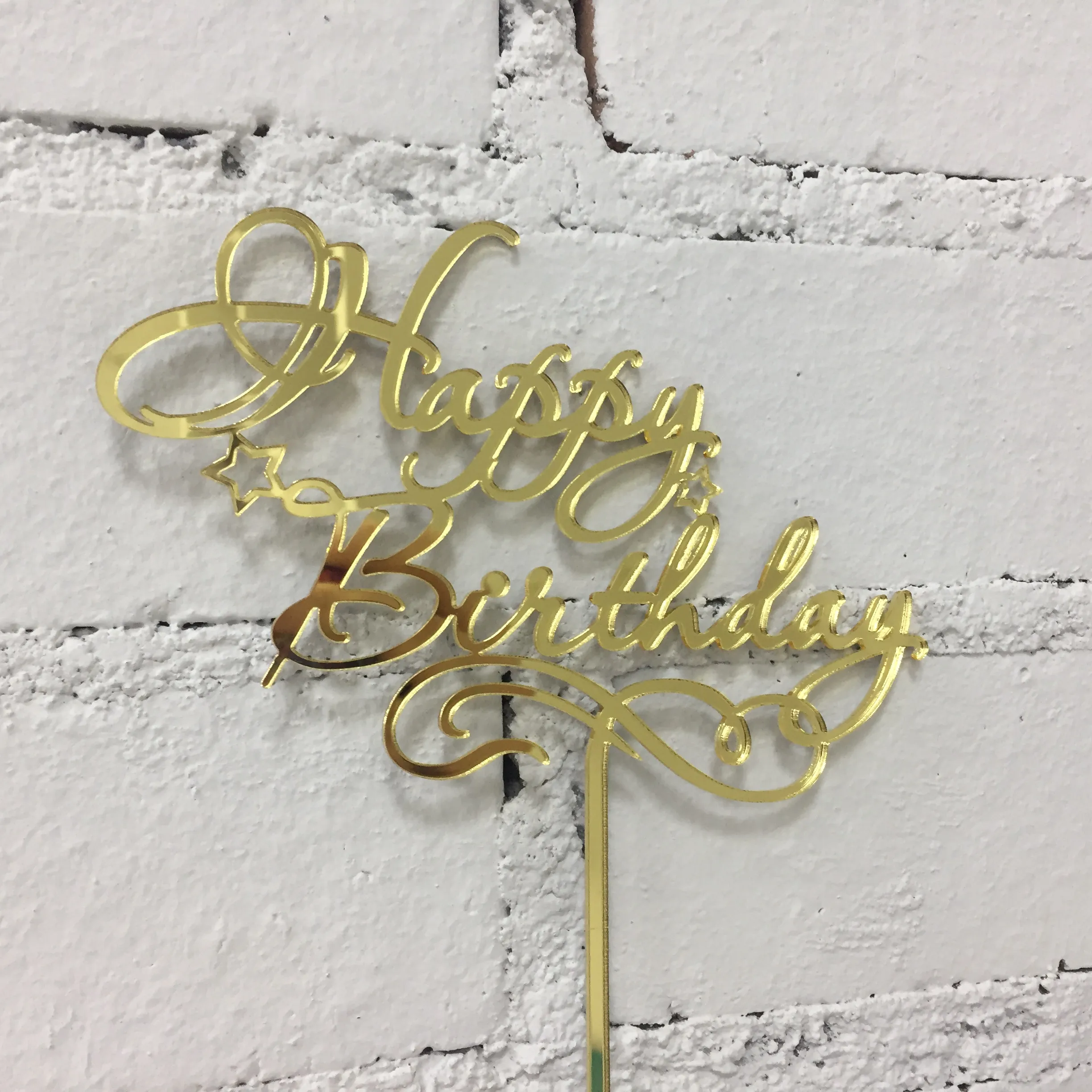 Топпер "Happy Birthday"(Хэппи), Золото, акрил (звезды)