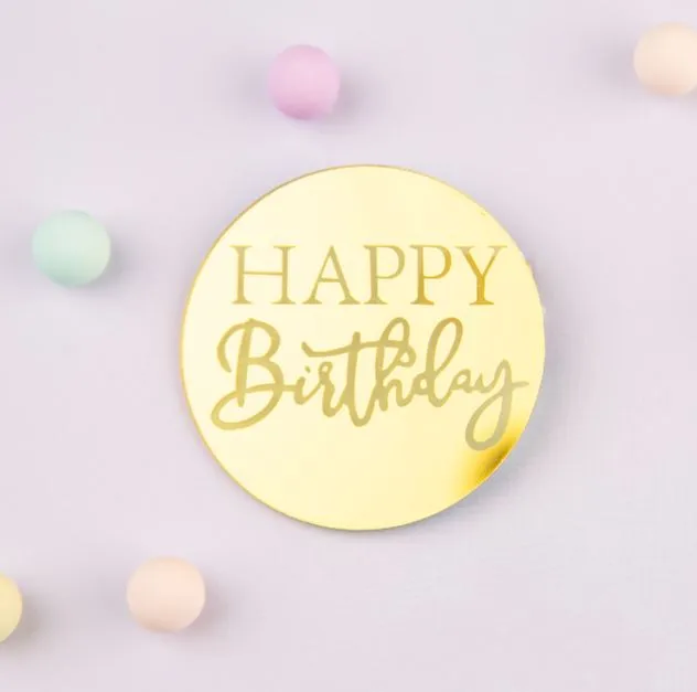 Топпер Круг "Happy Birthday №5", акрил, Золото