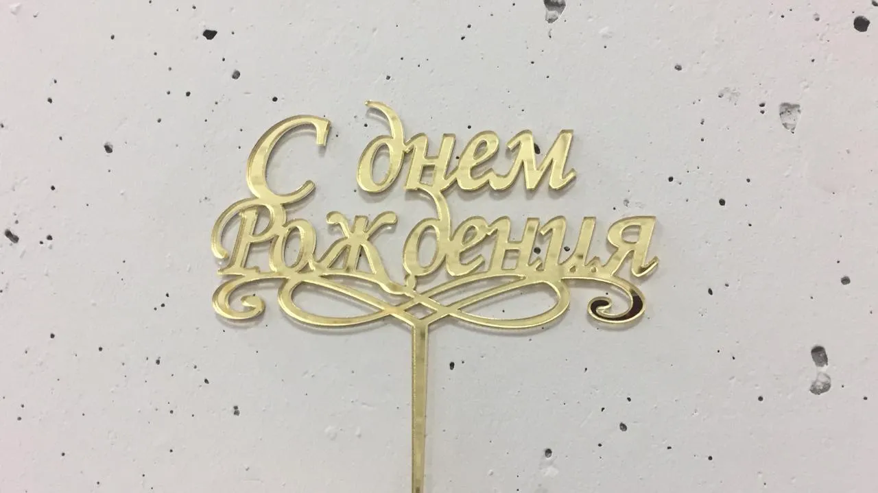 Топпер "С Днем Рождения", Золото, акрил