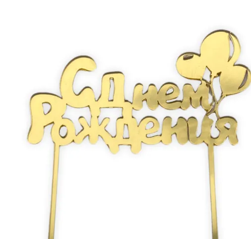Топпер "С Днем Рождения, Шарики", Золото, акрил