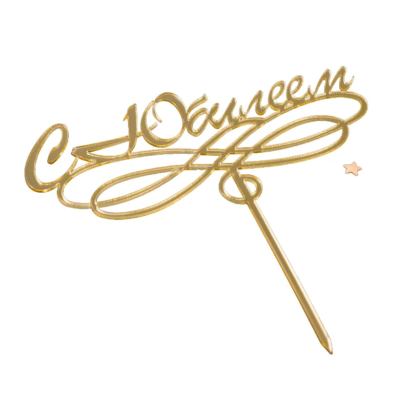 Топпер "С Юбилеем, Завиток", Золото, акрил