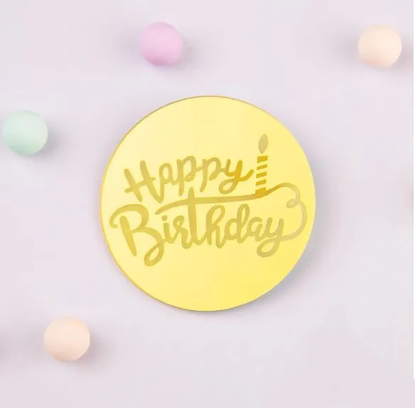 Топпер Круг "Happy Birthday", акрил, золото